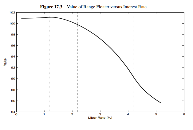 Figure 17.3. 금리 수준에 따른 Range Floater 가격